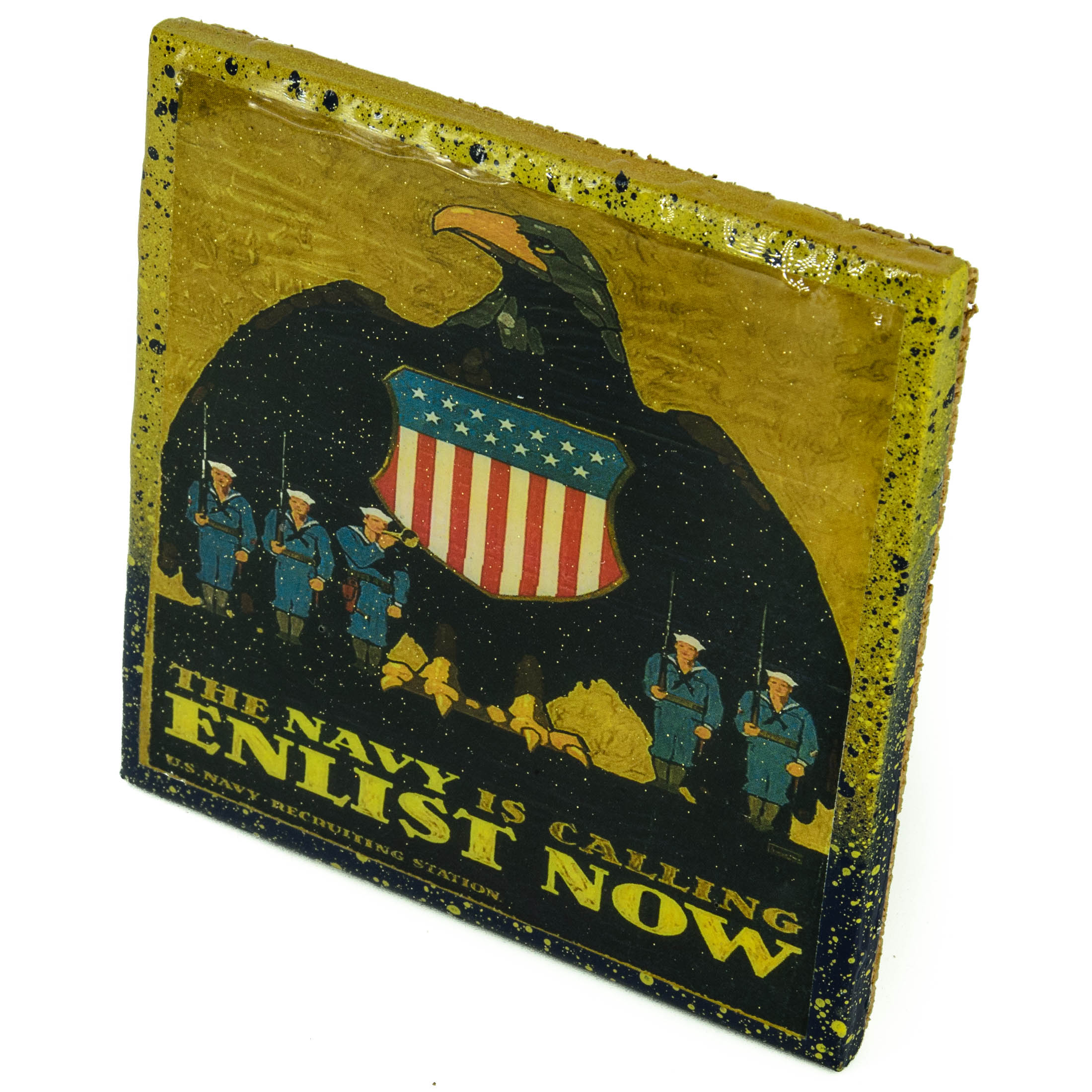 A Vintage Patriotic Military Art - Marines Military - The Navy Is Calling - adorns this classy handcrafted coaster made with a handpainted upcycled tile.