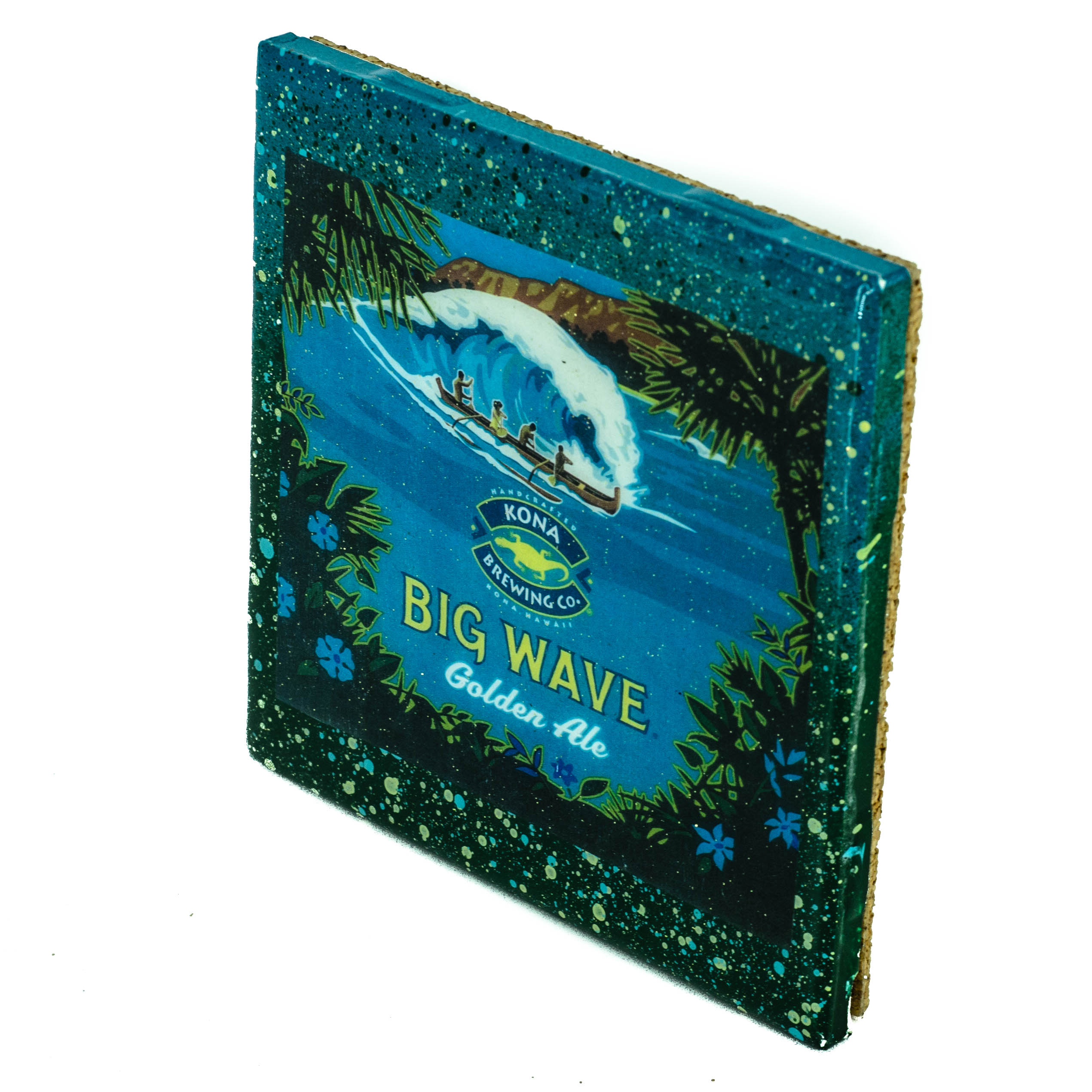 A Handmade Coaster Kona - Big Wave craft beer label adorns this classy handcrafted coaster made with a handpainted upcycled tile.