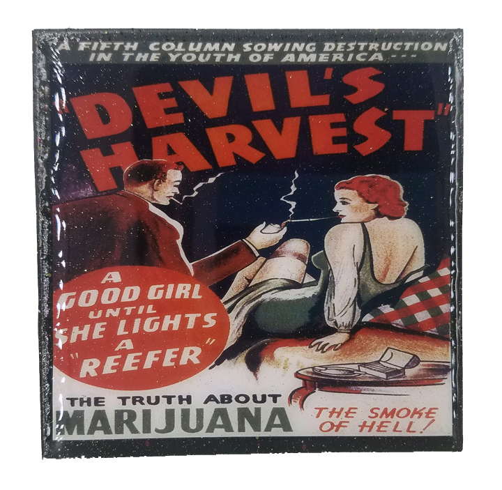 This Stella Divina handcrafted coaster features vintage Reefer Madness - Devil's Harvest - A Good Girl Until She Lights A Reefer - Vintage artwork. This vintage anti-marijuana propaganda art is from the 1936 film Reefer Madness.